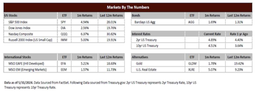 Stocks rallied in May and ended the month near all-time highs for the S&P 500. The index